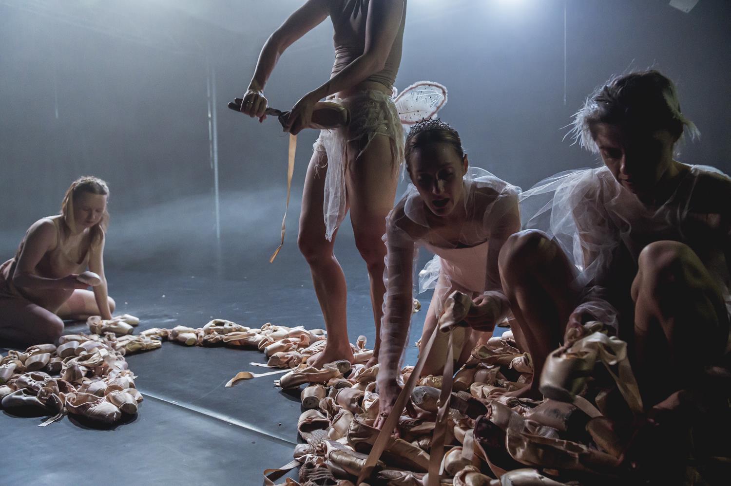 Cztery tancerki i niezależne artystki tańca, które ukończyły szkołę baletową, lecz porzuciły balet na rzecz innych form tanecznych, przyglądają się baletowi na nowo. Zauważają, co je dalej przyciąga w tej dyscyplinie, co je odrzuca, jakie widzą ślady swojej edukacji baletowej w obecnym ciele i życiu. Po 20 latach od zakończenia przygody z baletem Aleksandra Borys, Karolina Kraczkowska, Ramona Nagabczyńska i Iza Szostak osiągają krytyczny dystans potrzebny do tego, żeby dostrzec „tekst” baletu. A jak się okazuje „tekst” ten jest bardzo bogaty. Zarówno wyrażane explicite libretta baletowe, jak i ukryte za kulisami narracje można bez końca analizować jako machiny ideologiczne.